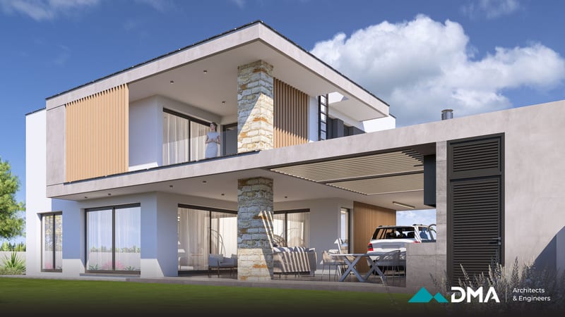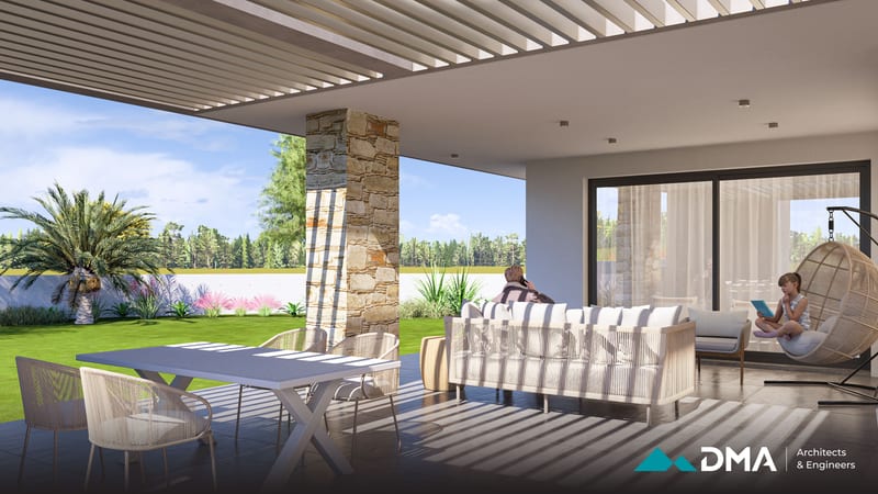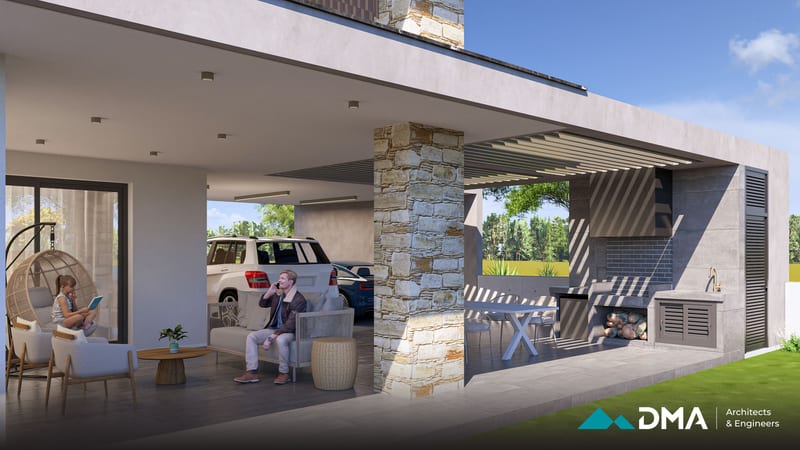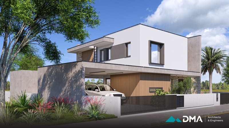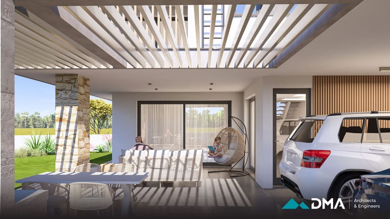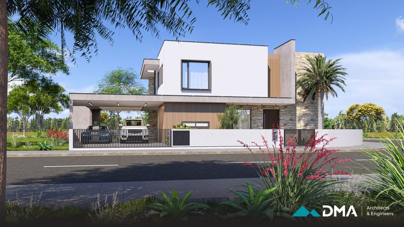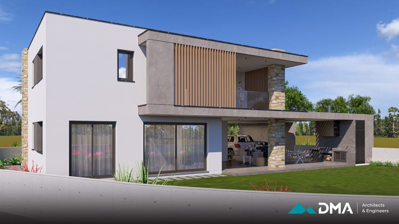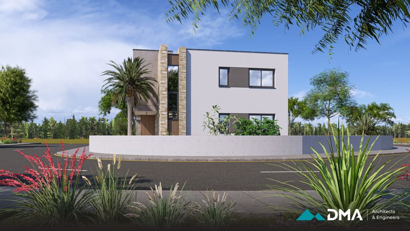 This private residence in the Aradippou area of Larnaca is a spacious four-bedroom home designed to combine comfort, functionality, and modern living. The residence features a large open-plan kitchen, dining, and living area, creating a bright and connected central space for family life. The building is designed to achieve Energy Class A performance, incorporating high-quality insulation and energy-efficient systems for optimal comfort and sustainability.