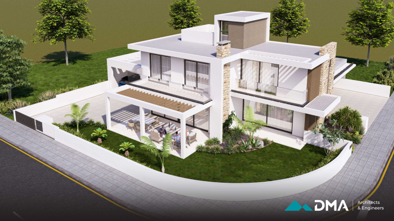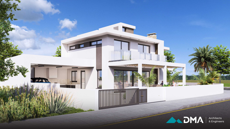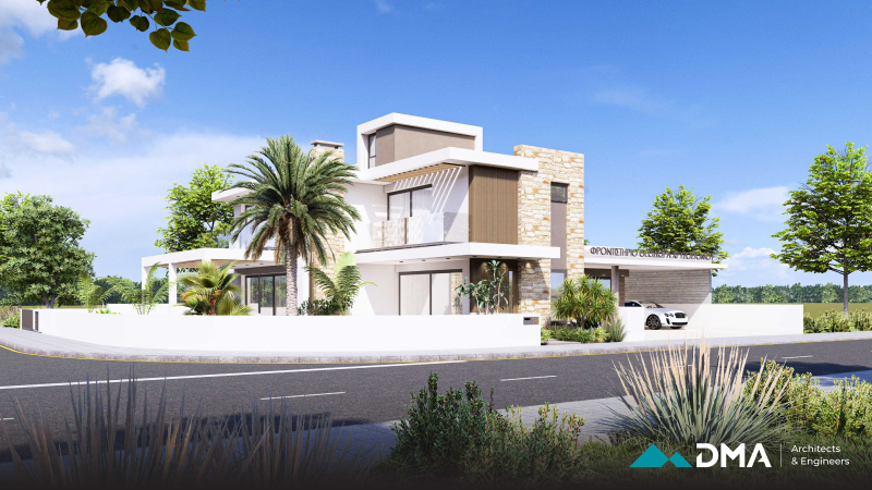 This private residence is located in Kiti, Larnaca, and features a modern architectural design, combining clean lines, functional spaces, and contemporary aesthetics. The home includes four bedrooms and is designed to provide a comfortable, light-filled living environment that meets the needs of modern family life.