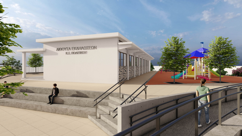 This project is located in Politico, Nicosia. The project includes the conversion of Politico school into a community event premises. The masterplan includes renovation of the existing school building, design of a plaza, an amphitheatre and a football field.