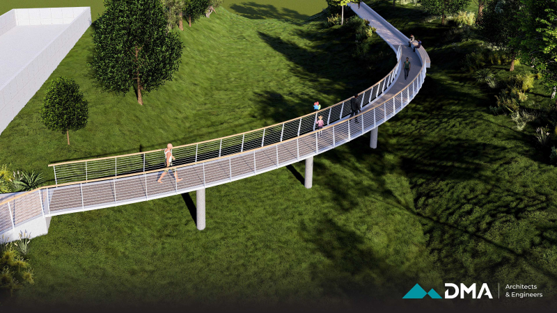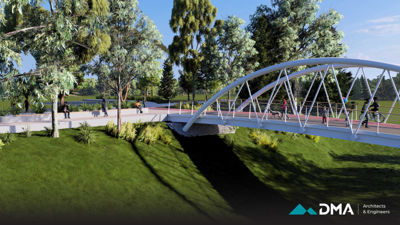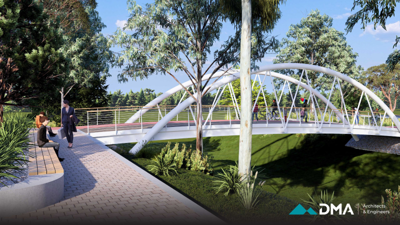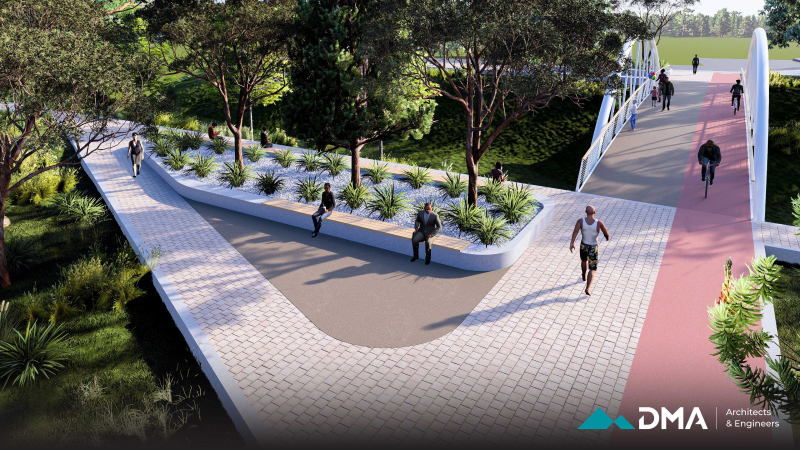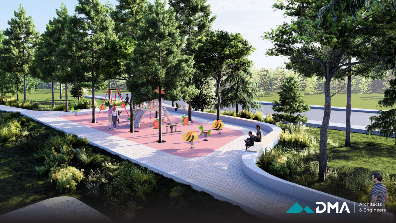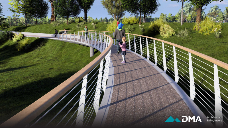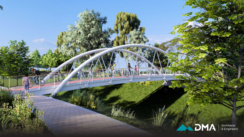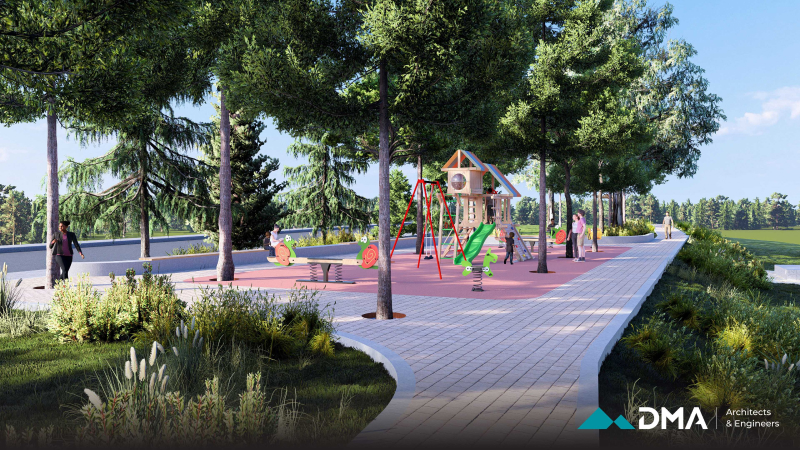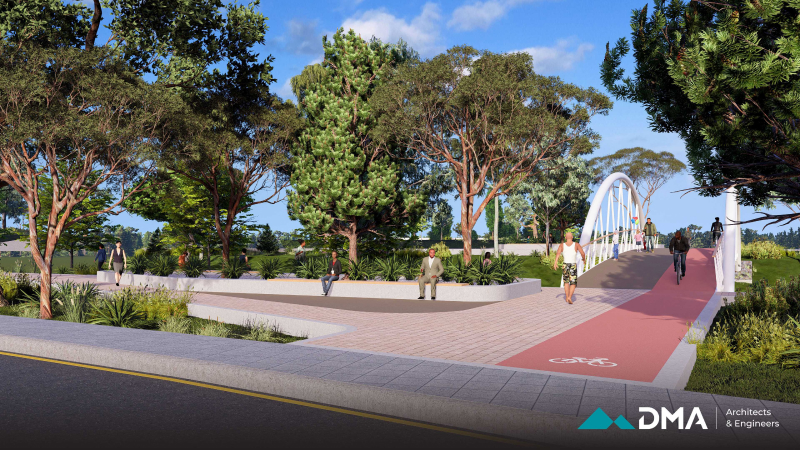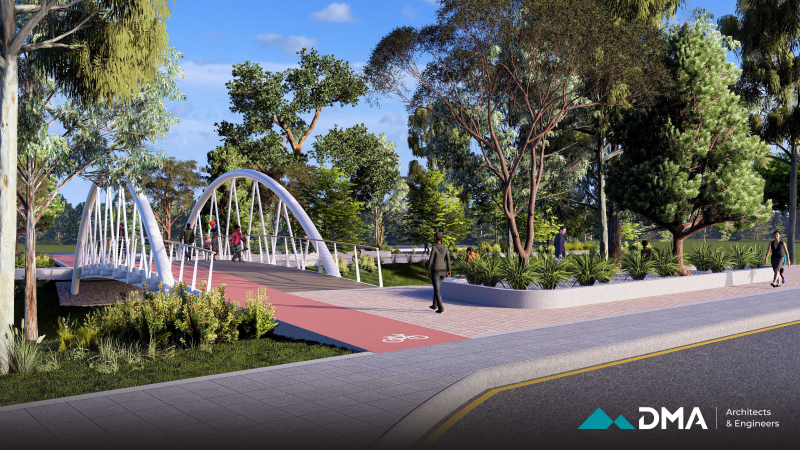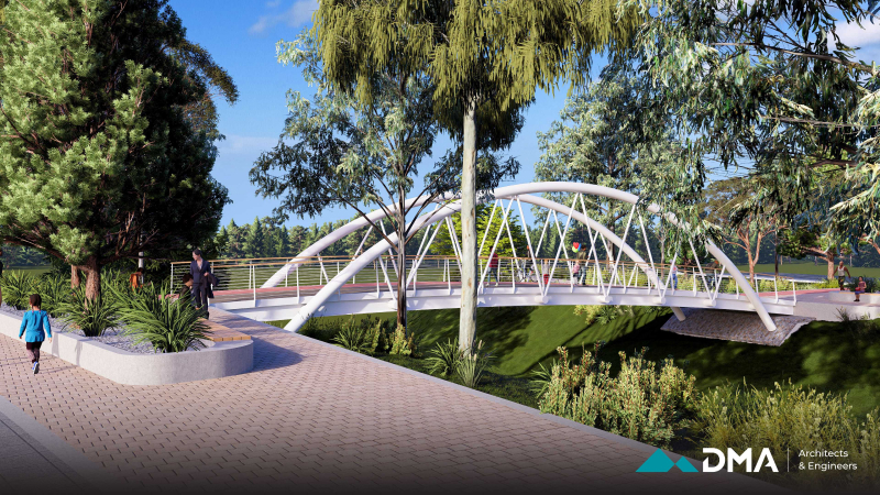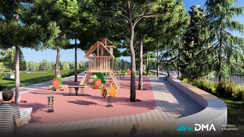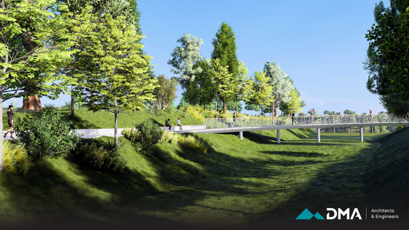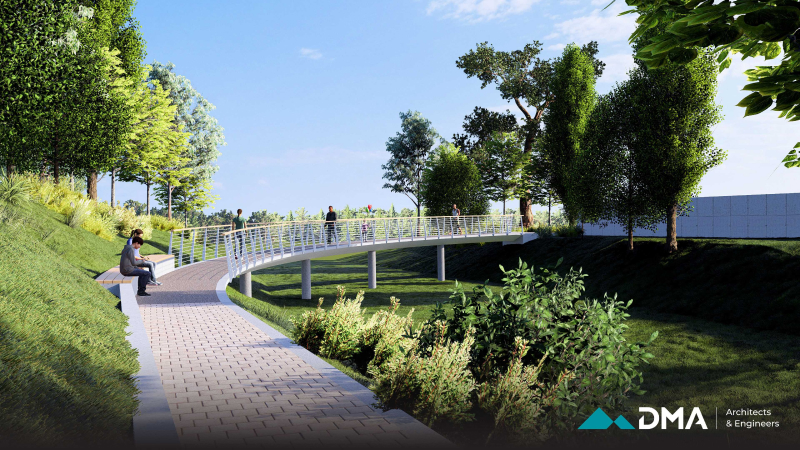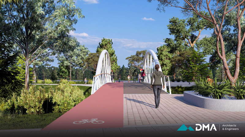 A central feature of the project is the construction of a bridge, designed as a combination of reinforced concrete and timber to provide both structural durability and visual warmth. The surrounding environment is carefully landscaped using sustainable methods and materials that are resilient to local climate and weather conditions, ensuring long-term durability and minimal maintenance.