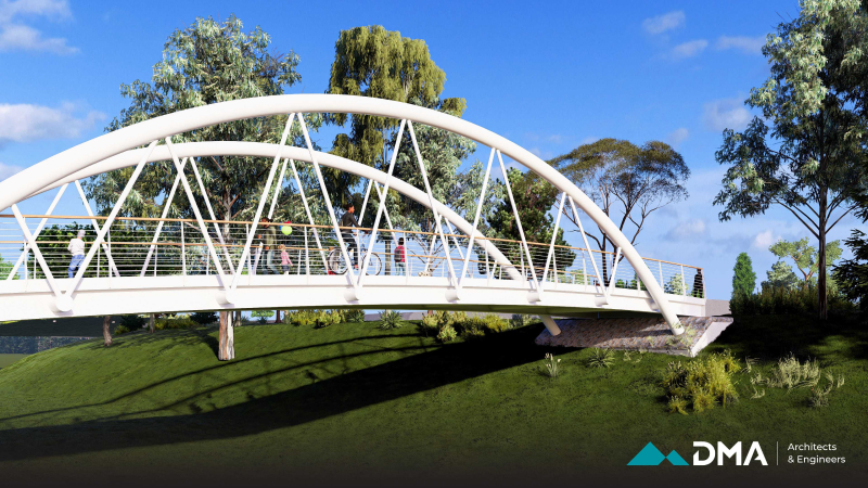 Our team is responsible for the design, planning, and supervision of the project, as well as comprehensive project management, coordination of all relevant consultants, and budget management. This ensures that all aspects—from the bridge and landscaping to sustainability measures—are executed efficiently, on time, and within the allocated budget. The project reflects a commitment to sustainability, community engagement, and high-quality construction.